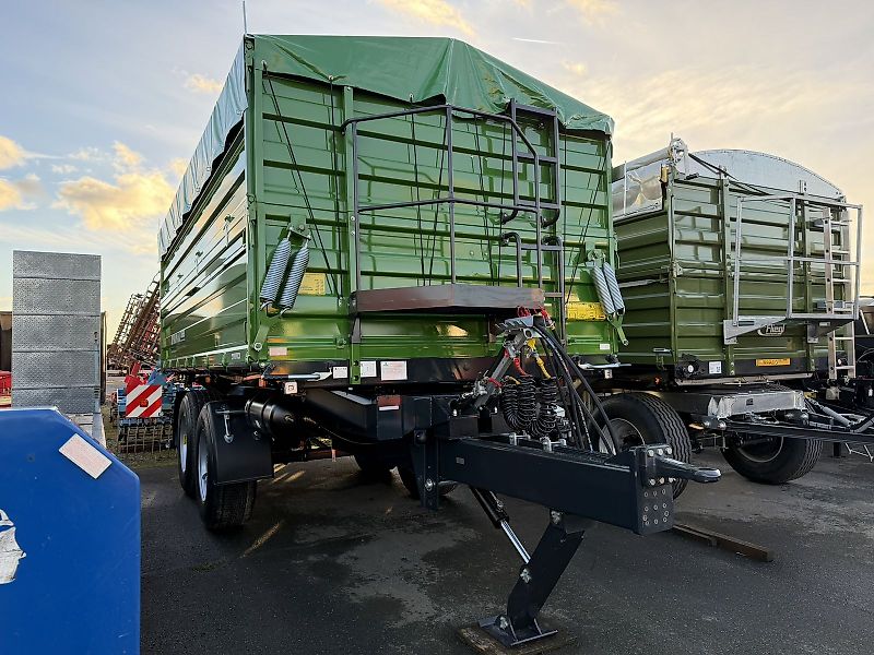 800+800mm mit Spannleisten also ohne Seilen in der Mitte, Auslaufgosse, 40km/h COC Dokumente, Druckluftbremse mit ALB Regler, Plane mit klappbarem Mittelrohr, 385/65 R22,5 NEUREIFEN, Deichselfederung mit Gummipuffer, hintere Anschlüsse, Rockinger AHK hinten, Kornschieber mit Auslaufgosse, Kotflügel, Bordwandhebelfedern, Stehpodest, hydr. Stützfuß mit Sperrblock, LED Beleuchtung, Schutzgitter für Heckleuchten